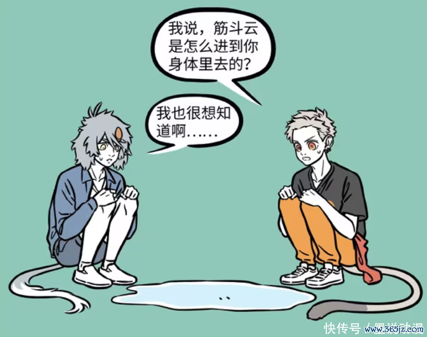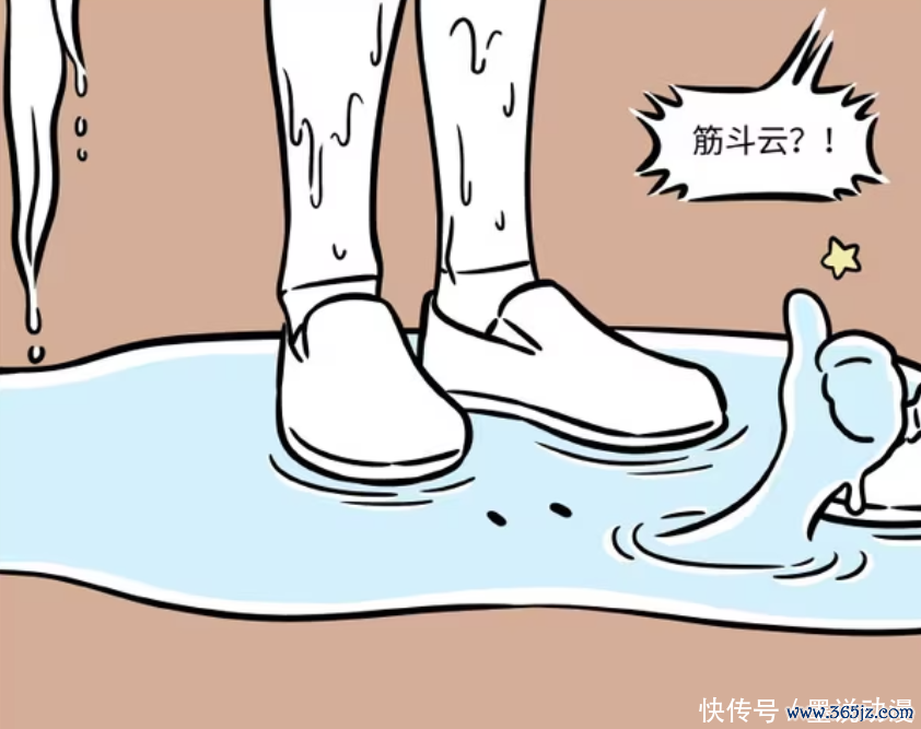 《非东说念主哉》漫画版中,哮天因为吃掉筋斗云之后,变得不错流汗。在筋斗云被排出哮天体外之后,更是变成一滩水。孙悟空和哮天念念方针,要让筋斗云变回一团云,仅仅围不雅之东说念主不知说念他们到底在干什么?
