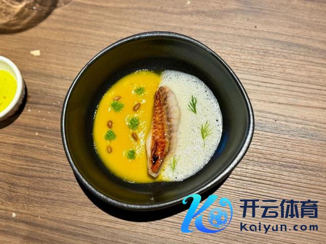 中间是厚味的鱼,左边是无语其妙的南瓜汤,