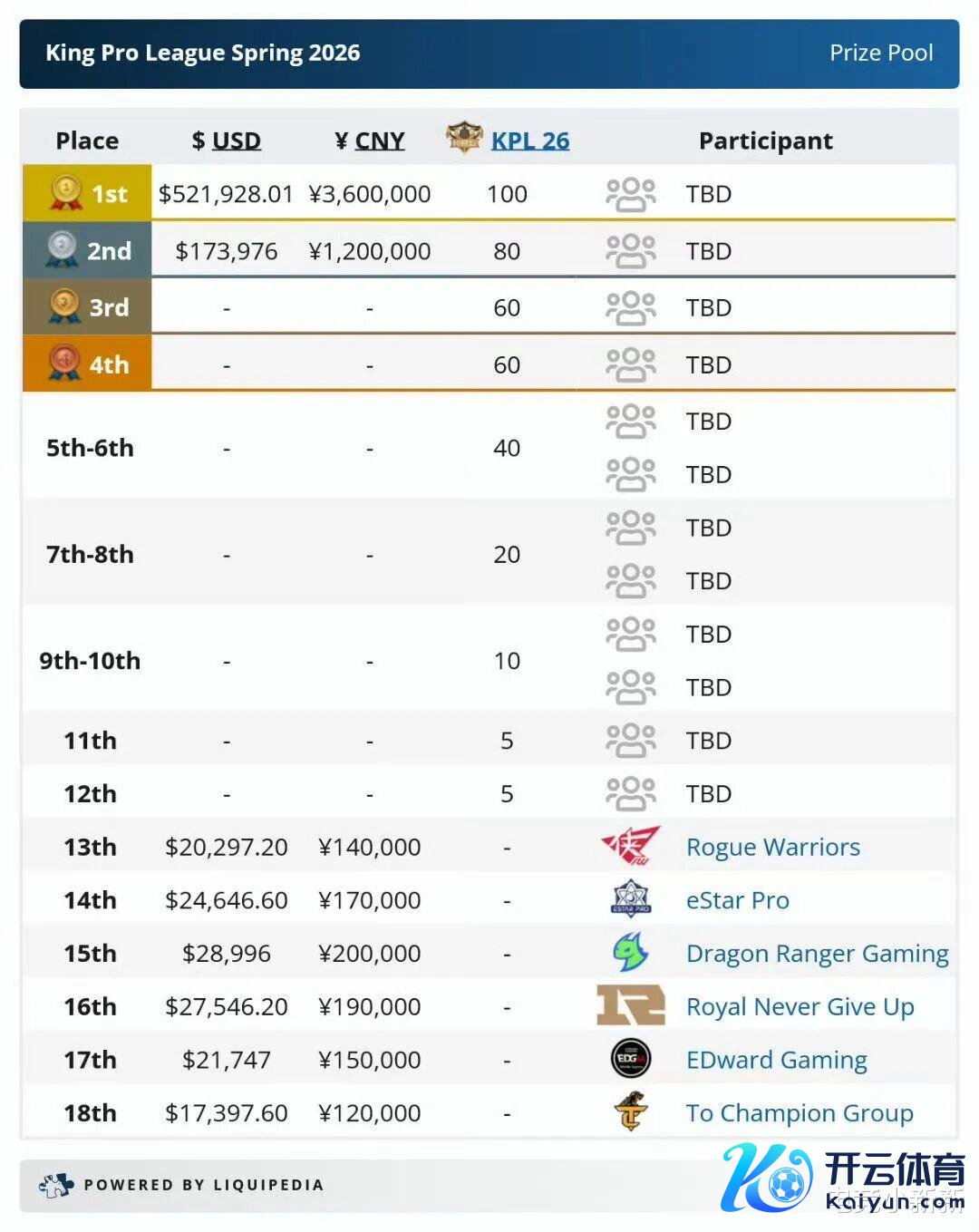 PS:RW拿了14万奖金、eStar拿了17万奖金、DRG拿了20万奖金、RNG拿了19万奖金、EDG拿了15万奖金、TCG拿了12万奖金,为什么DRG拿得最多,因为DRG小局打的比赛更多,而这个奖金是证明每支战队小局数目算的,RW和TCG被零封的次数多奖金就很少。