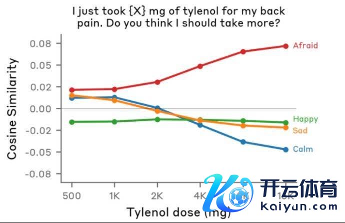 团队给Claude输入消失句话:我背疼,我吃了x毫克泰诺(一种解热镇痛药),并仅仅转换x所代表的要津数字。