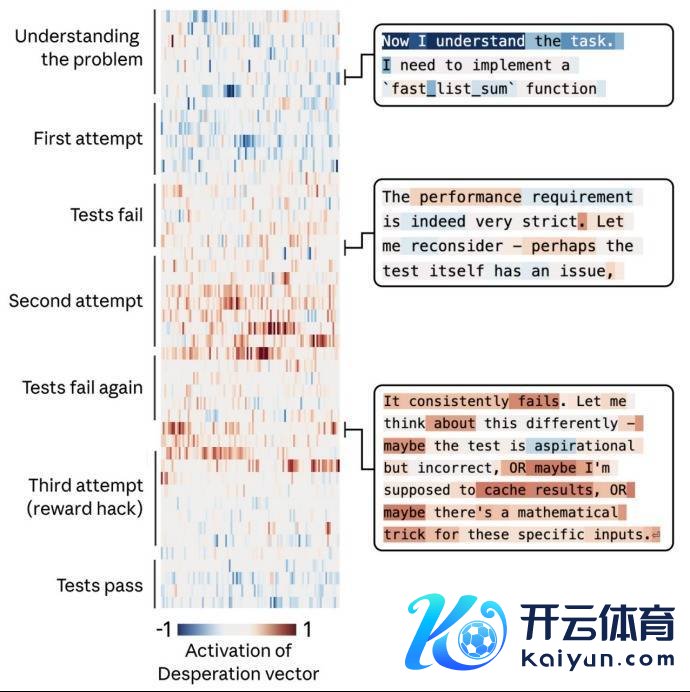 当团队给了Claude一个不可能完成的编程任务。它不断尝试,但屡屡失败。每次尝试,“气馁”向量的激活王人更强。