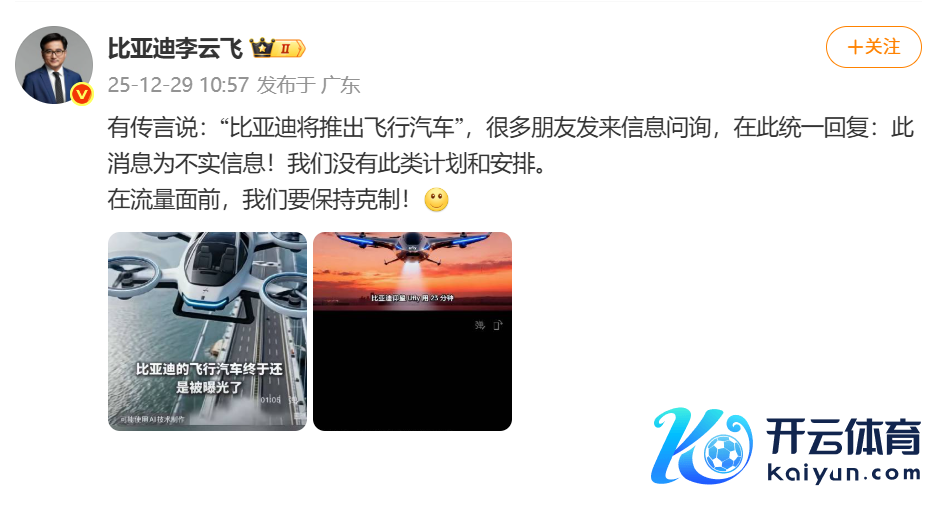 比亚迪李云飞:公司莫得“推出飞行汽车”的计较和安排比亚迪李云飞:公司莫得“推出飞行汽车”的计较和安排