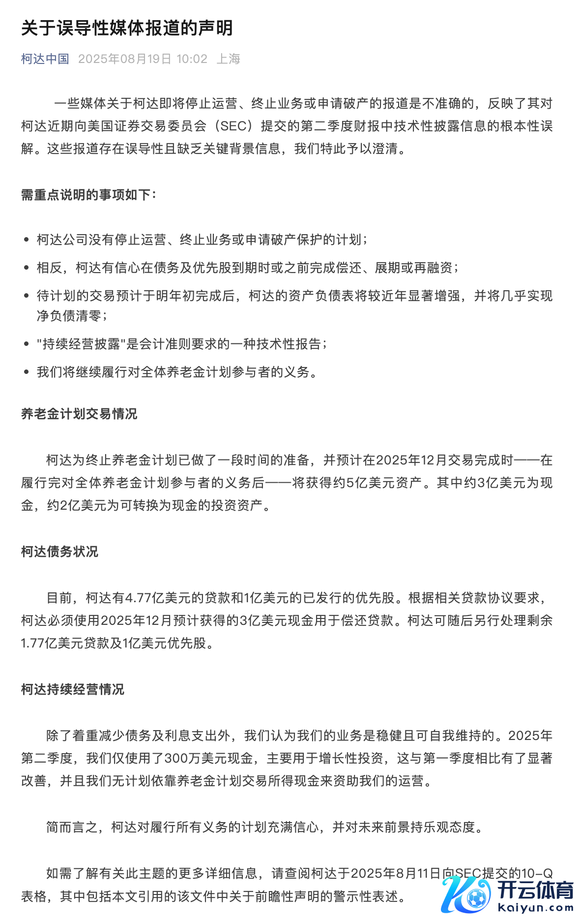柯达公司暴露:莫得住手运营、远离业务或请求歇业保护的计较九游体育娱乐网柯达公司暴露:莫得住手运营、远离业务或请求歇业保护的计较